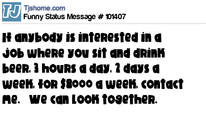 X If anybody is interested in a job where you sit and drink beer, 3 hours a day, 2 days a week, for $8000 a week, contact me. We can look together.