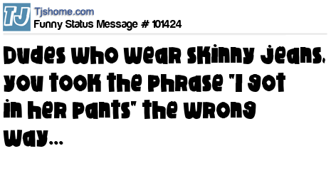 - # 92714 Attention, guys wearing "skinny Jeans", you took the phrase "getting into her pants" the wrong way