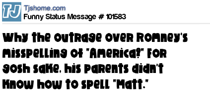 X is Why the outrage over Romney's misspelling of "America?" For gosh sake, his parents didn't know how to spell "Matt."