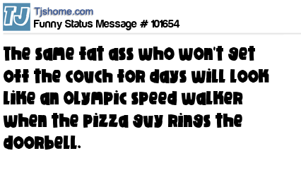 X The same fat ass who won't get off the couch for days will look like an Olympic speed walker when the pizza guy rings the doorbell.