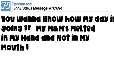 X You wanna know how my day is going ?? My M&M's Melted in my Hand and Not in My Mouth !