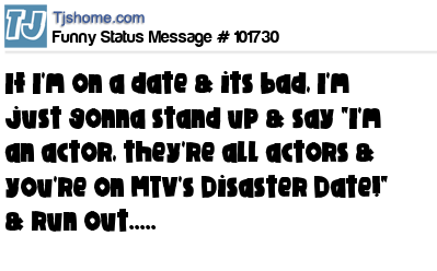 - # 82759 If I'm on a date & it's bad, I'm just gonna stand up & say, "I'm an actor, they're all actors, & you're on MTV's Disaster Date!" & RUN out.