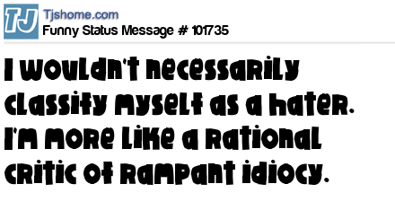 X I wouldn't necessarily classify myself as a hater. I'm more like a rational critic of rampant idiocy.