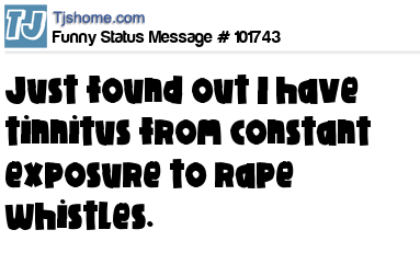 X Just found out I have tinnitus from constant exposure to rape whistles.