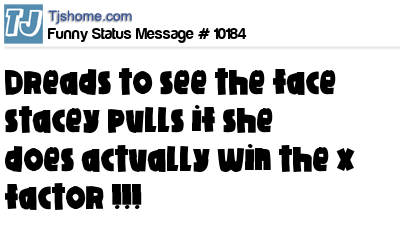 X is dreads to see the face stacey pulls if she does actually win the x factor !!!