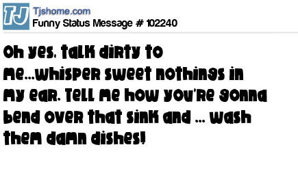 X oh yes, talk dirty to me...whisper sweet nothings in my ear. Tell me how you're gonna bend over that sink and ... wash them damn dishes!