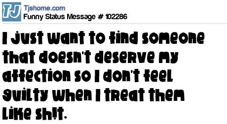 - # 102333 says I just want to find someone that doesn't deserve my affection so I don't feel guilty when I treat them like sh!t.