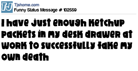 X is I have just enough ketchup packets in my desk drawer at work to successfully fake my own death