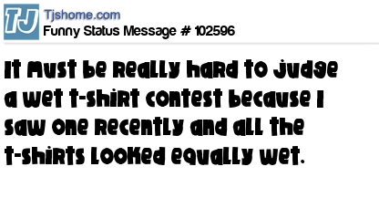 X says It must be really hard to judge a wet t-shirt contest because I saw one recently and all the t-shirts looked equally wet.