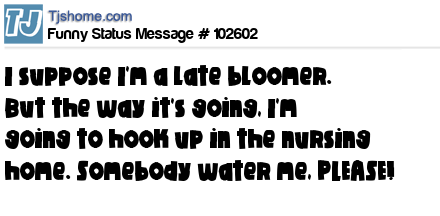 X says I suppose I'm a late bloomer. But the way it's going, I'm going to hook up in the nursing home. Somebody water me, PLEASE!