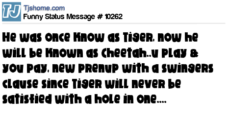 X says he was once know as Tiger, now he will be known as Cheetah..u play & you pay, new prenup with a swingers clause since Tiger will never be satisfied with a hole in one....