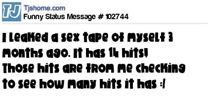 X I leaked a sex tape of myself 3 months ago. It has 14 hits! Those hits are from me checking to see how many hits it has :/