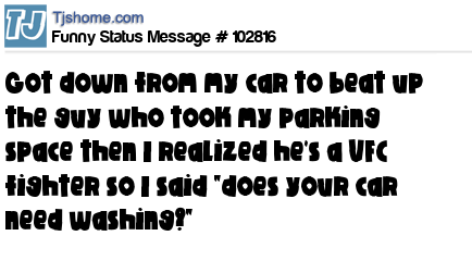 X says Got down from my car to beat up the guy who took my parking space then I realized he's a UFC fighter so I said "does your car need washing?"