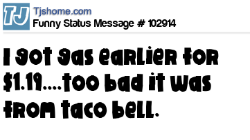 X is I got gas earlier for $1.19....too bad it was from taco bell.