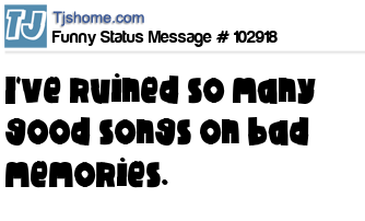 - # 75517 Hate , when I hear a good song ,now this songs comes on while we hang out,now I am stuck thinking about you ...you ruined a good song