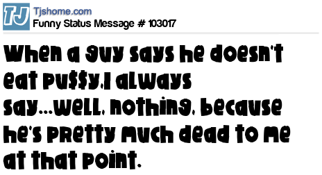 X says When a guy says he doesn't eat pu$$y,I always say...well, nothing, because he's pretty much dead to me at that point.
