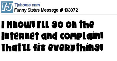 X is I know! I'll go on the Internet and complain! That'll fix everything!