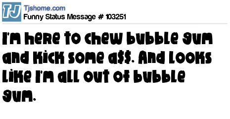 - # 35928 I came here to kick ass and chew bubble gum...and I'm all out of gum
