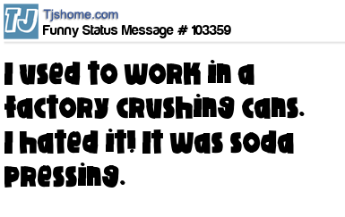 - # 74332 I used to have a job where I crushed aluminum cans all day. worst job ever....soda pressing.