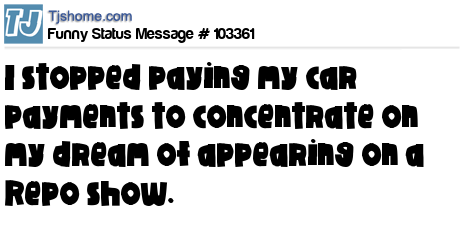 X is I stopped paying my car payments to concentrate on my dream of appearing on a Repo show.