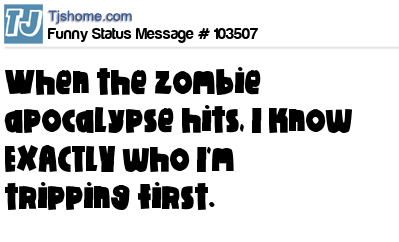 X When the zombie apocalypse hits, I know EXACTLY who I'm tripping first.