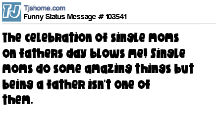 - # 103608 The celebration of single moms on "Fathers Day" kills me! Single moms do some amazing things but keeping a man apparently isn't one of them.