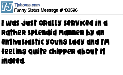 X says I was just orally serviced in a rather splendid manner by an enthusiastic young lady and I'm feeling quite chipper about it indeed.
