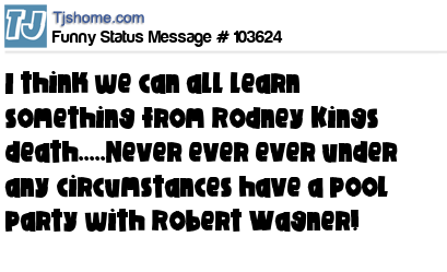 - # 103618 R.I.P. Rodney King...I'm not quite sure, but getting drunk and smoking "hippy lettuce" in the pool seems to be about as good of an idea as hiring Robert Wagner to be your swim coach...just sayin!