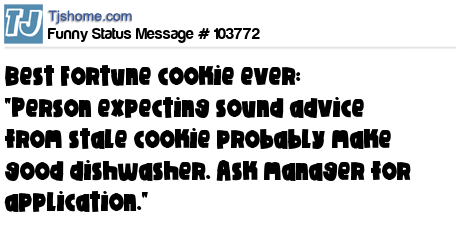 X says Best Fortune cookie ever: "Person expecting sound advice from stale cookie probably make good dishwasher. Ask manager for application."