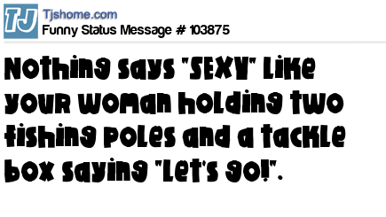 X Nothing says "SEXY" like your woman holding two fishing poles and a tackle box saying "Let's go!".