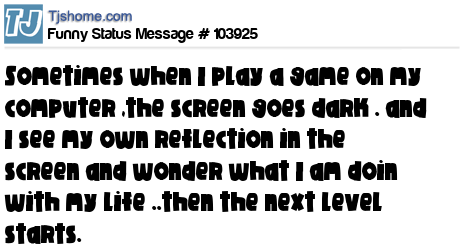 X is Sometimes when I play a game on my computer ,the screen goes dark . and I see my own reflection in the screen and wonder what I am doin with my life ..then the next level starts.