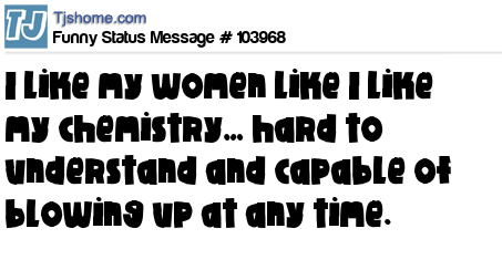 X says I like my women like I like my chemistry… hard to understand and capable of blowing up at any time.