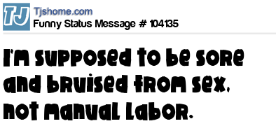 X says I'm supposed to be sore and bruised from sex, not manual labor.