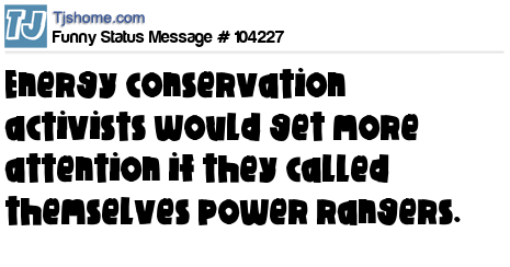 X Energy conservation activists would get more attention if they called themselves power rangers.