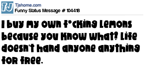 - # 99420 Hey if life hand's you lemons , you better find someone that life handed sugar and water ,or your lemonaide is gonna taste like crap...