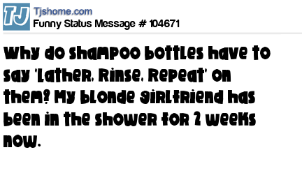X Why do shampoo bottles have to say 'Lather, Rinse, Repeat' on them? My blonde girlfriend has been in the shower for 2 weeks now.
