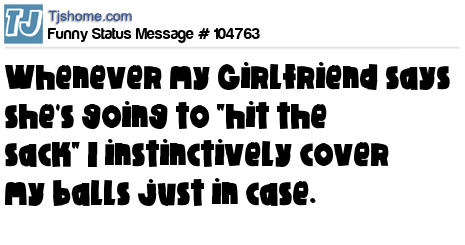 X says Whenever my Girlfriend says she's going to "hit the sack" I instinctively cover my balls just in case.