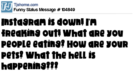 X Instagram is down! I'm freaking out! What are you people eating? How are your pets? What the hell is happening???