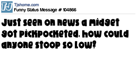 - # 104468 I can't believe it. I saw on the news where a midget got pick pocketed in broad daylight...how could anyone stoop so low?