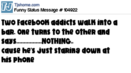 X Two Facebook addicts walk into a bar. One turns to the other and says.................NOTHING,, cause he's just staring down at his phone