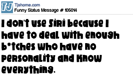 - # 100876 So Siri is basically a chick that has no personality and claims to know everything? ...Sounds like my ex!