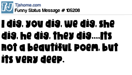 - # 197980 I dig, you dig, we dig, she dig, he dig, they dig. Its not a beautiful poem, but its very deep.