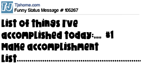 X  List of things I've accomplished today:,,,,,  #1 Make accomplishment list..............................................................