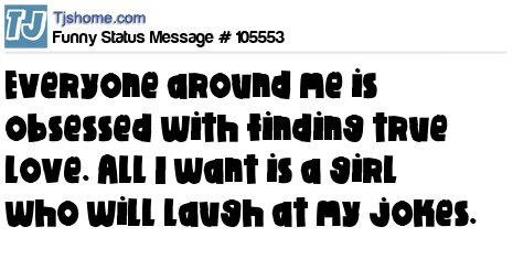X says Everyone around me is obsessed with finding true love. All I want is a girl who will laugh at my jokes.