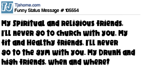 X says My Spiritual and religious friends, I'll never go to church with you. My fit and Healthy friends, I'll never go to the gym with you. My Drunk and high friends, when and where?