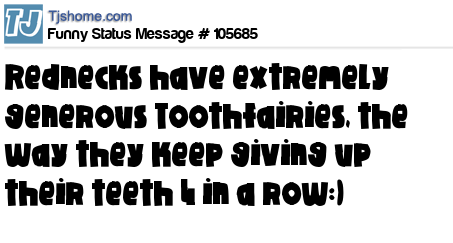 X is Rednecks have extremely generous Toothfairies, the way they keep giving up their teeth 4 in a row:)