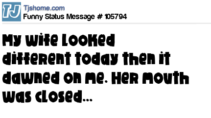 X says My wife looked different today then it dawned on me. Her mouth was closed...