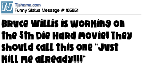 - # 33468 heard that Bruce Willis is working on the next Die Hard movie. Working titles are Die Hard: The Colonoscopy or Die Hard: Medicare with a Vengeance.