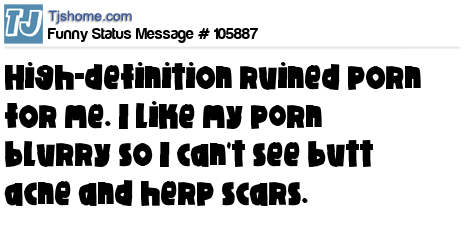X says High-definition ruined porn for me. I like my p0rn blurry so I can't see butt acne and herp scars.