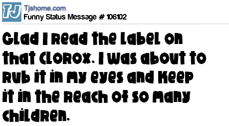 X Glad I read the label on that Clorox. I was about to rub it in my eyes and keep it in the reach of so many children.